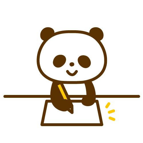 書類を記入するパンダと書類を記入しないパンダ