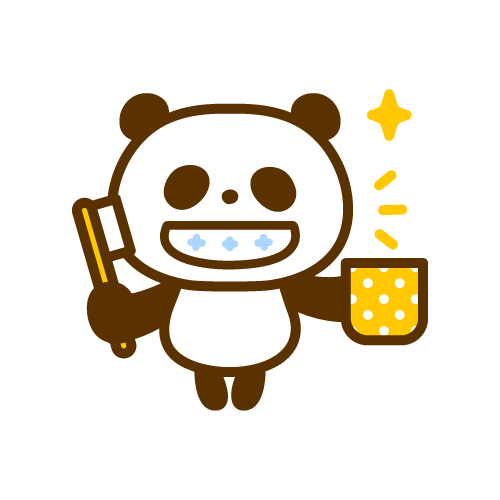 歯みがきをするパンダのイラストと歯ブラシのイラスト