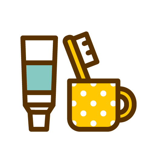 歯磨きをするパンダのイラストです。歯ブラシと歯磨き粉、歯磨きコップのイラストもご一緒に。