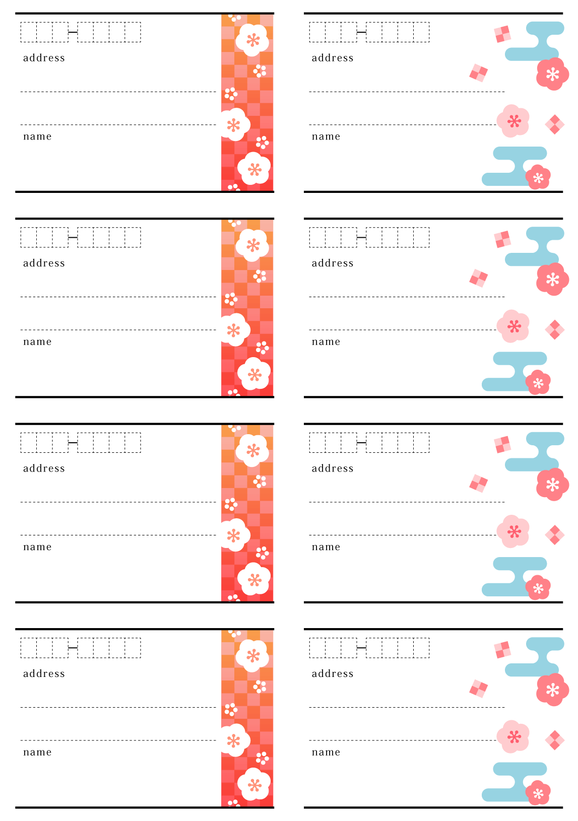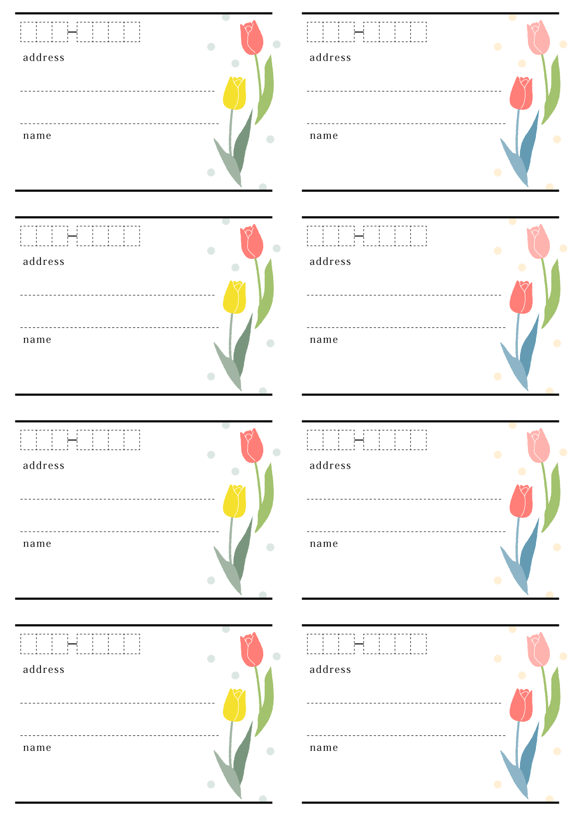 【無料ダウンロード】宛名シール用テンプレート:新春・チューリップ