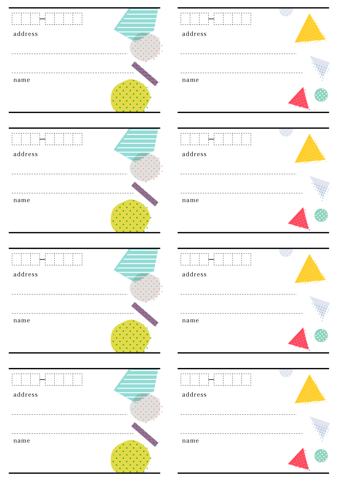 宛名シール(8枚用):ポップな幾何柄