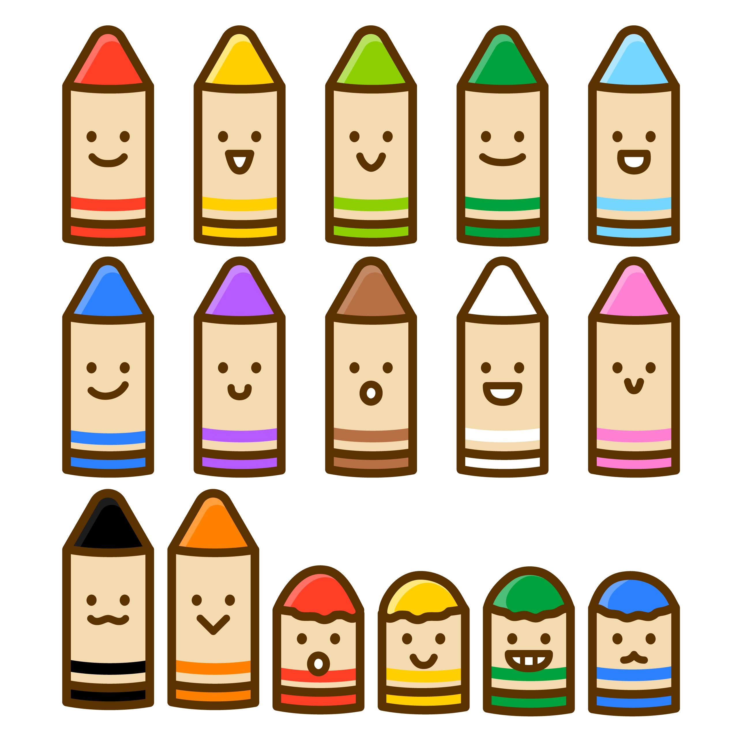 クレヨンのイラストです。長いクレヨン12色と短いクレヨン4色があります。