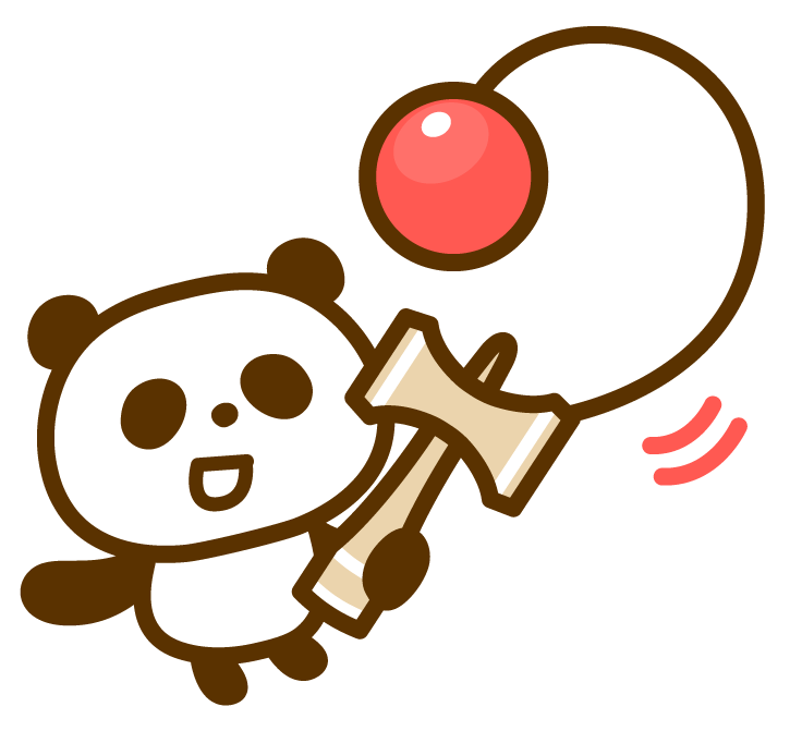 けん玉単品やけん玉を楽しむ子供とパンダのイラストも追加しました。お知らせや掲示物等に、併せてご活用ください。
