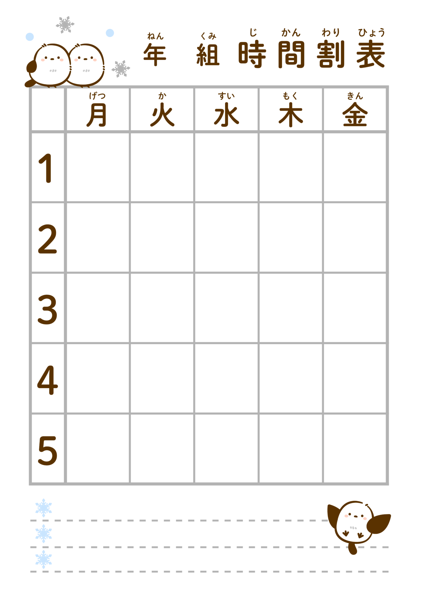 - 1年生向け【5時間目まで】【フリガナ付き】