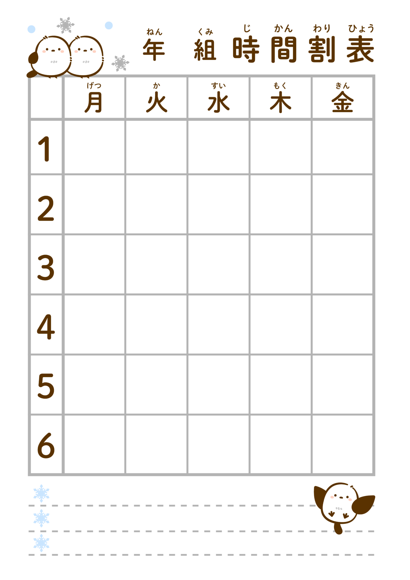 - 2年生以上向け【6時間目まで】【フリガナ付き】