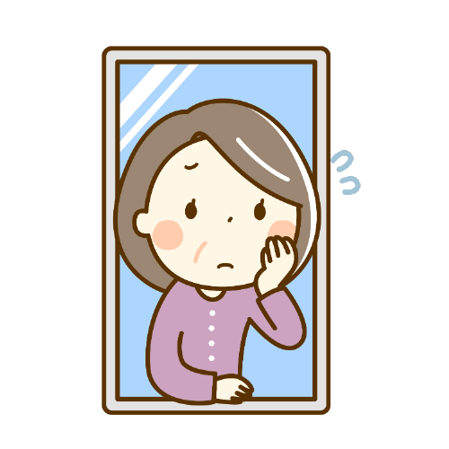スマートフォンで相談、質問する中年女性と対応するスーツの女性の表情セットです。